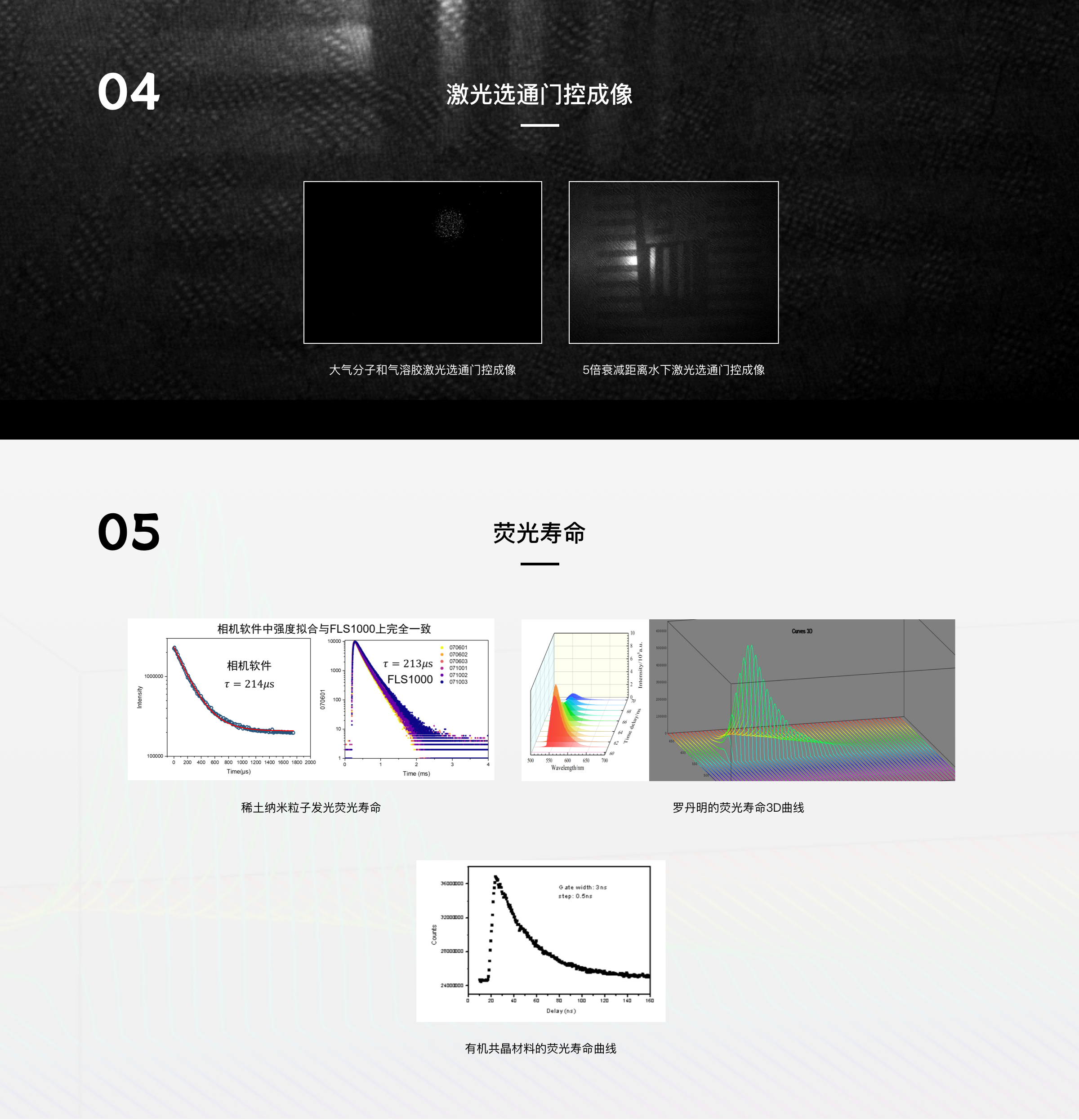 以皮秒精度捕捉瞬态现象,并大幅降低背景噪声;在等离子体诊断和 瞬态吸收荧光光谱应用场景,具备更高的时间分辨率,可以获得更精 准的时间演化过程。在门控拉曼光谱采集应用场景,抑制荧光和背景 光能力更加卓越。