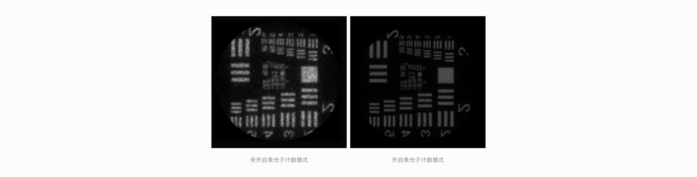 单光子识别时,得益于精确的光学质心算法,空间分辨率及对比度大幅提升。